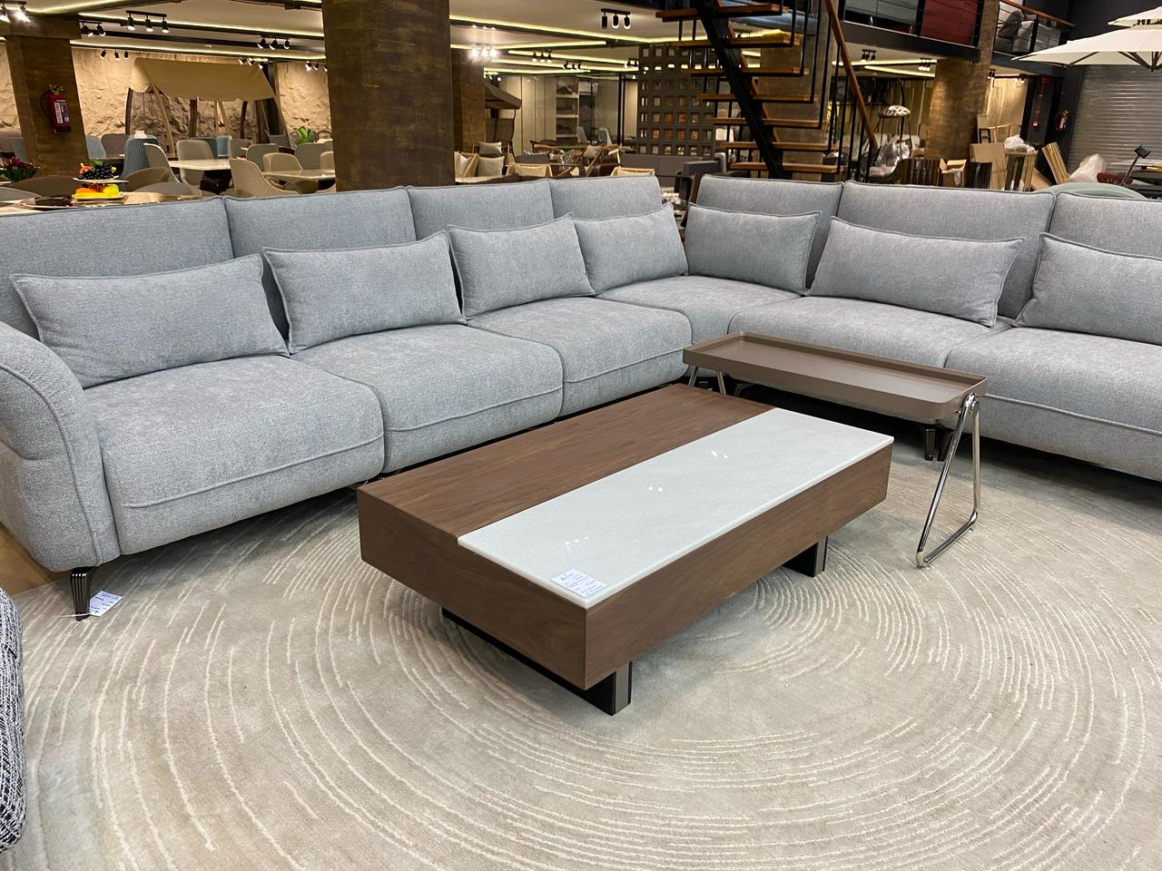 Introducing our beautifully crafted 9-seater sofa, proudly made in-house with exceptional attention to detail and quality. This spacious and elegant piece is upholstered in premium jute fabric, offering a natural texture and timeless appeal. Designed to accommodate large families or gatherings, it combines durability with comfort through its sturdy structure and generous seating. Ideal for luxurious living rooms or spacious lounges, this sofa reflects fine craftsmanship and a refined aesthetic. Its earthy tone and modern silhouette make it a perfect centerpiece for any contemporary home.