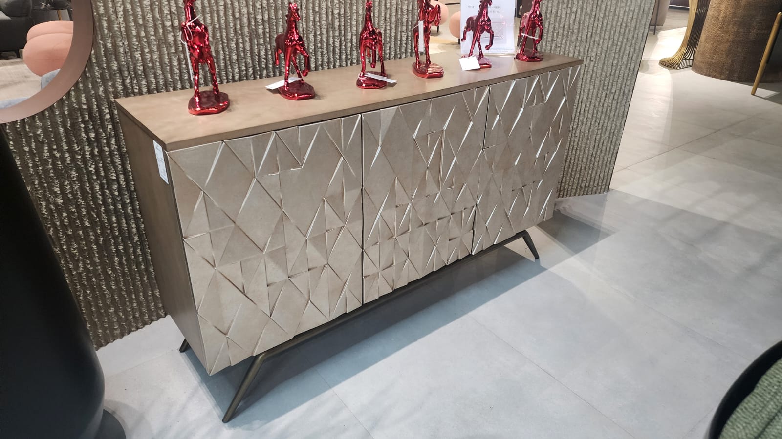 CONSOLE - 3DOOR CABINET SIZE - 1500*400*860mm MATERIAL - Birch mountain pattern +door panel relief+ iron - tripod bronze