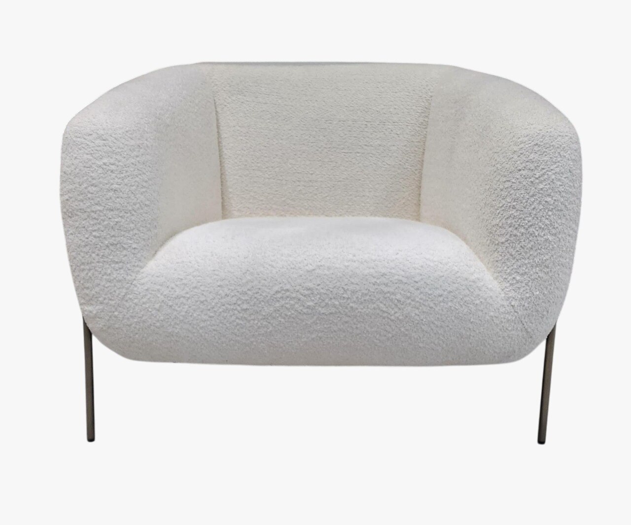 This stylish leisure chair in beige fabric and Gold metal legs offers plush comfort with high-quality foam and a spacious design (880*820*720mm). TYPE - leisure chair MATERIAL - Fabric & stainless steel COLOUR - White & Gold SIZE(mm) - 880*820*720